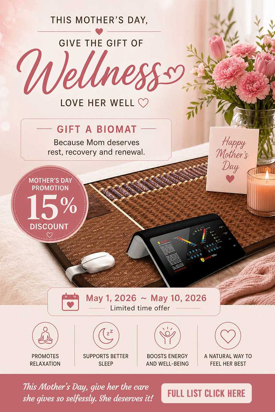I love that being a Biomat distributor provides the opportunity to build wealth in two ways- through health and through finances. Being able to sleep restfully and feel relief from pain helps my clients deal with mental, physical, and emotional stress better- that’s health wealth. Being able to build a business I believe in and show others how to do the same, that’s financial wealth.